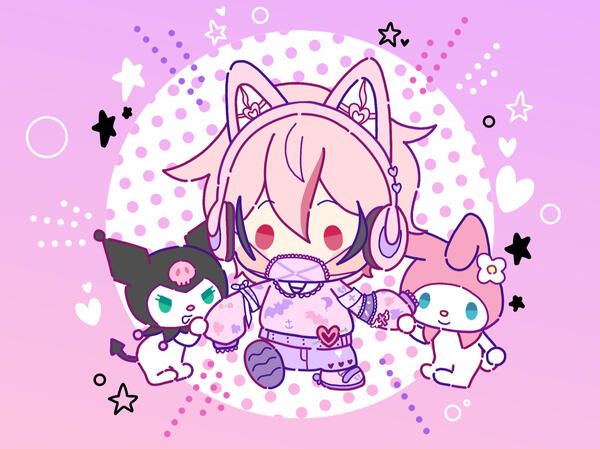 I do a lot of work with a certain Sanrio inspired chibi style. I can happily make one for you, with or without Sanrio characters of your choice!